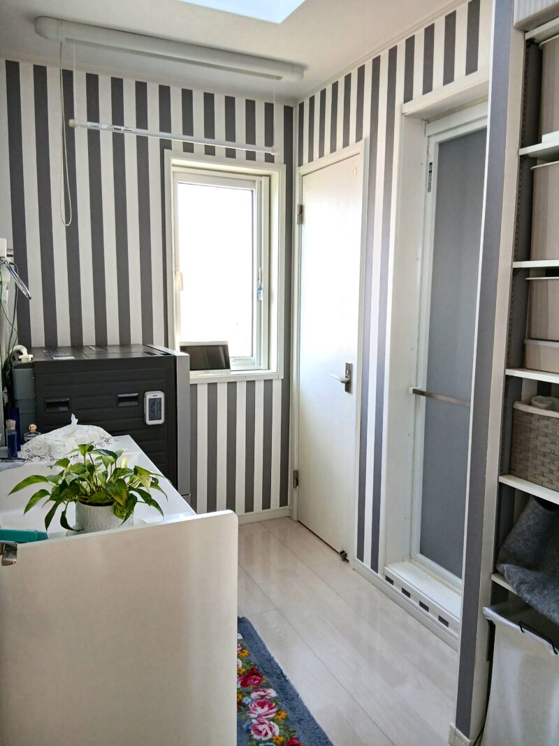 我が家の洗面室のサイズは3帖でグレー色を基調としています。 ドアを開けると左側が洗面台と洗濯機、右側の手前が可動棚、中央にバスルームのドア、奥がトイレドアにな… -