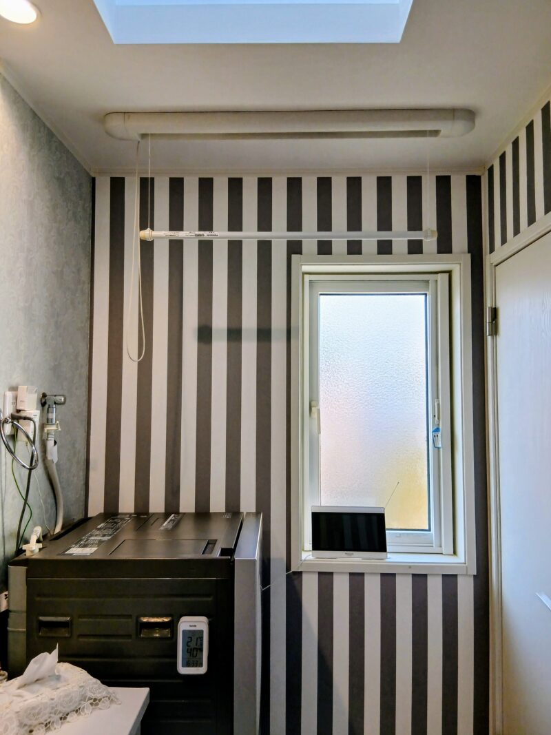 洗濯機上はパナソニック製干し姫様を付けています。