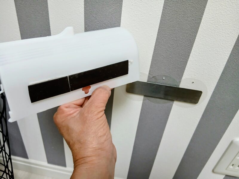 下側のコロコロのカバーの裏にはマグネット、壁側にはマグネット補助プレートを取り付けているので。