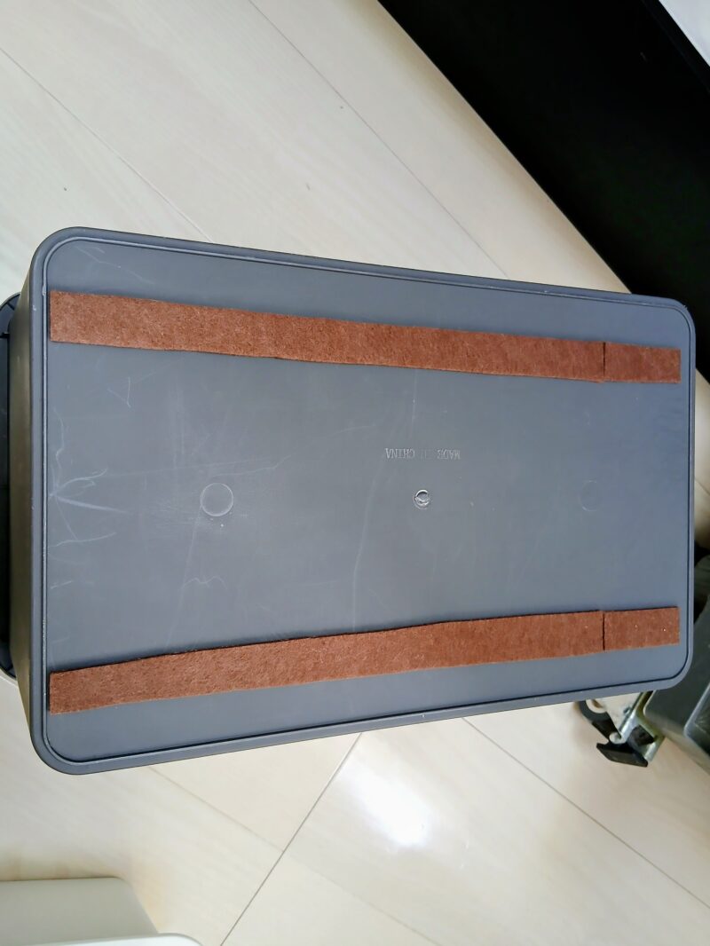 普段使う洗濯洗剤などはダイソースクエアボックスの裏側に傷防止用フェルトを貼り付けて滑りを良くし引き出しのような使い方をしています。