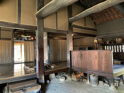 土間と板の間の境、上の写真やや左に見える長方形の柱が大黒柱だそうです。