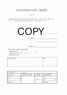 変更内容を申請書に明記し、計画変更前・計画変更後の設計図書を添付して提出。変更された部分を中心に再度 確認審査が行われ、適法であると判断されれば、計画変更後の「確認済証」が交付されます。